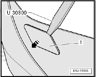 Pull off the protector trim -1- of the spray nozzle with the lever - U 30800- in -direction of arrow-.