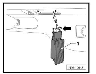 - Disconnect plug connector -arrows- and remove the glove compartment light -1-.