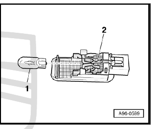 - Remove bulb -1- from bulb holder -2- on reverse side of glove compartment light.