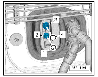 - Unscrew bolts -1- and -3-.