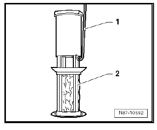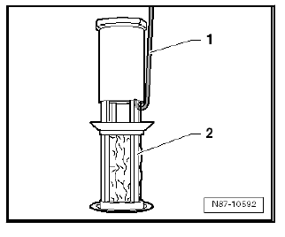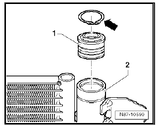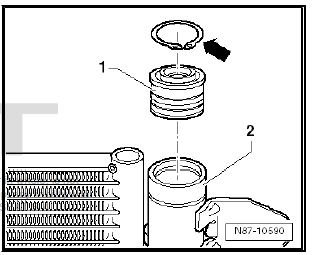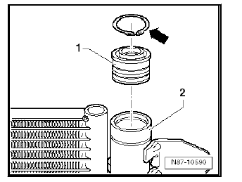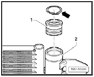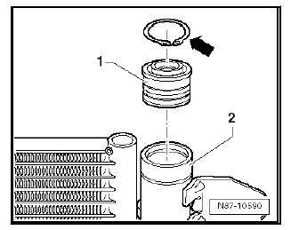 - Insert the cap -1- and press it downwards until the circlip -arrow- can engage in the groove.