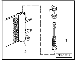 - Seal the open liquid tank with the plastic screw plug -1- to prevent ingress of dirt and moisture.