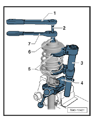 - Slacken off spring compressor - V.A.G 1752/1- and detach from coil spring.