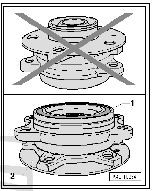 - The wheel bearing -1- must always face upwards when laying down the wheel bearing unit.