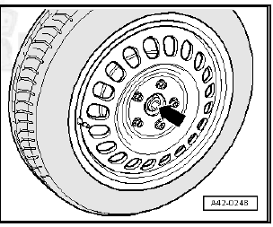 - With the vehicle still standing on its wheels, loosen the bolt by maximum 90º in order not to damage the wheel bearing. Use the 24 mm socket insert - T10361A- to do this.