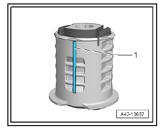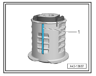 - As an assembly aid, draw a line -1- vertically on the shoulder of the bonded rubber bush.