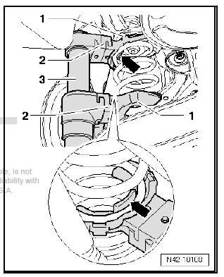 | WARNING Ensure that coil spring is correctly seated in spring retainer - V.A.G 1752/3A- -arrow- (accident risk). |