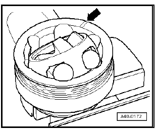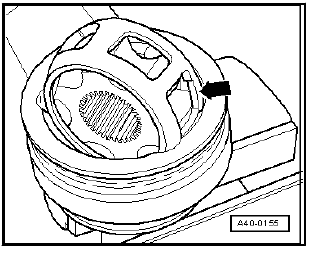 - Mark the position of the ball hub relative to the cage and the housing before removing, use an electric pen or a softening stone -arrow-.