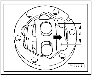 When fitting, ensure that the larger distance -a- on the joint housing coincides at all points with the smaller distance -b- on the hub after turning it.
