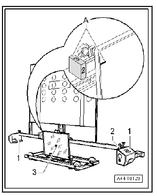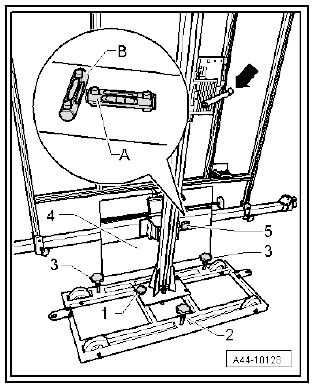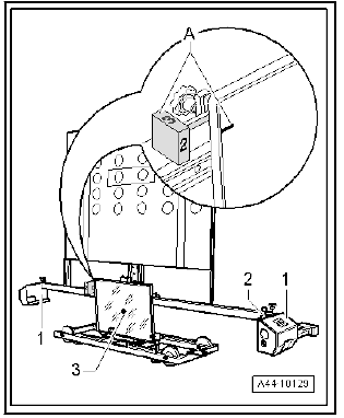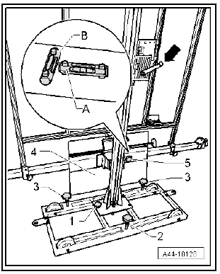 - Use the adjusting screws -1-, -2- and -3- to bring spirit levels -A- and -B- on - VAS 6430/3- horizontal.