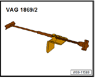 - Before removing brake caliper or disconnecting brake hose from brake caliper, insert brake pedal actuator - V.A.G 1869/2- to prevent brake fluid reservoir from emptying completely.