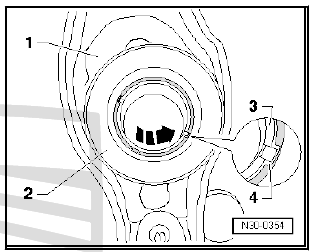 - Rotate guide sleeve -3- about 90º in the direction of the arrow in relation to the clutch release collar -2- until the tabs of the guide sleeve are in the recesses -4- of the clutch release collar.