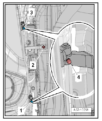 - Release the fixing pin -4- of the hinge axis at the top, do not screw out.