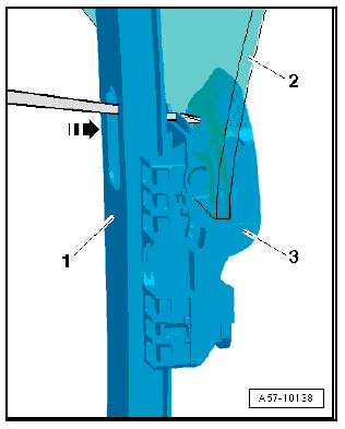 - Use screwdriver or similar tool to press actuator -3- outwards through opening in window guide -1- and hole in door window -2- in order to release actuator.