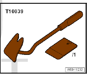 - Insert the wedge - T10039/1- under the window shaft seal and disengage in the direction of the -arrows- on the door.