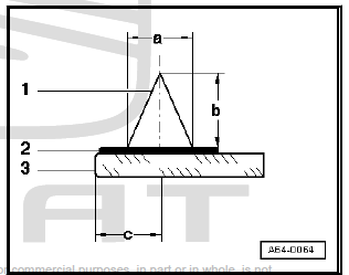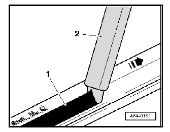 - In the intended area -1- of the window, using the cartridge gun - SAT 5350- or the double cartridge gun - VAS 5237- , apply an adhesive bead of the dual component adhesive - D 004 660 M2- .