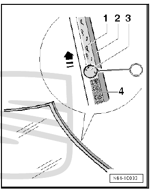 - Apply evenly on the glass area -1- a coat of primer (Glass/ Paint) - D 009 200 02- -4- by using an applicator - D 009 500 25- -3-.