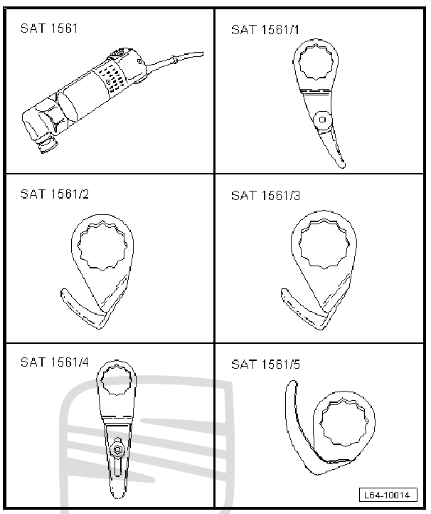 | Caution The blades are marked with the manufacturer's part no. This number is engraved on the blade. To avoid damaging the paintwork, protect the surfaces near the work areas with masking tape and with the protective film of the splitter - VAG 1474B- . |