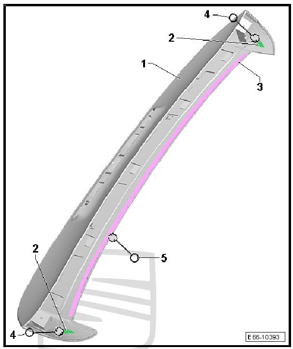 - Remove from the spoiler -1- all residual adhesive -2- and -3-.