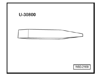 - Loosen the retaining clips with the lever - U 30800- at the previously marked positions. -1-.