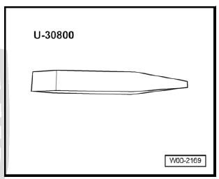 - Carefully remove the self-adhesive emblem from the upper grille of the bumper trim using the lever - U 30800- .